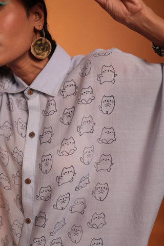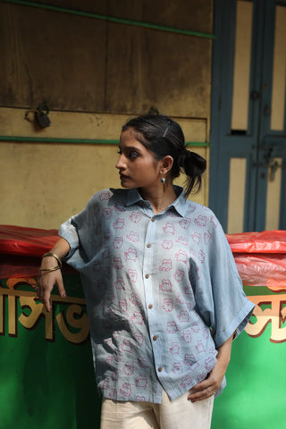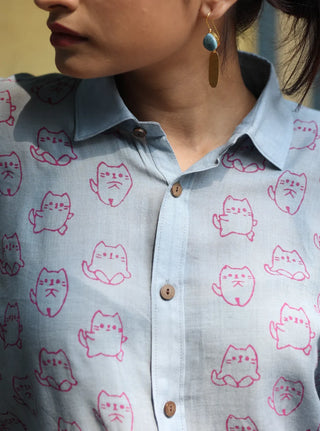 Sunset at Cat Island Handloom Bamboo Button Down Shirt Periwinkle Blue