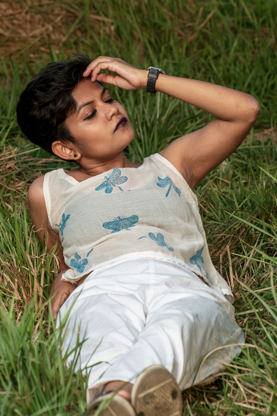 This is a 100% handloom organic cotton crop top. Laced bordered sleeveless crop top is totally handmade with a lot of love. The certified organic cotton that we use for the crop top is extremely. The block print with quirky yet minimal motifs, make the crop unique and fresh. We bank on AZO free colours for dye as well as for block print. The versatile crop top can be worn in many styles, with a saree, or a skirt, or a pant.
