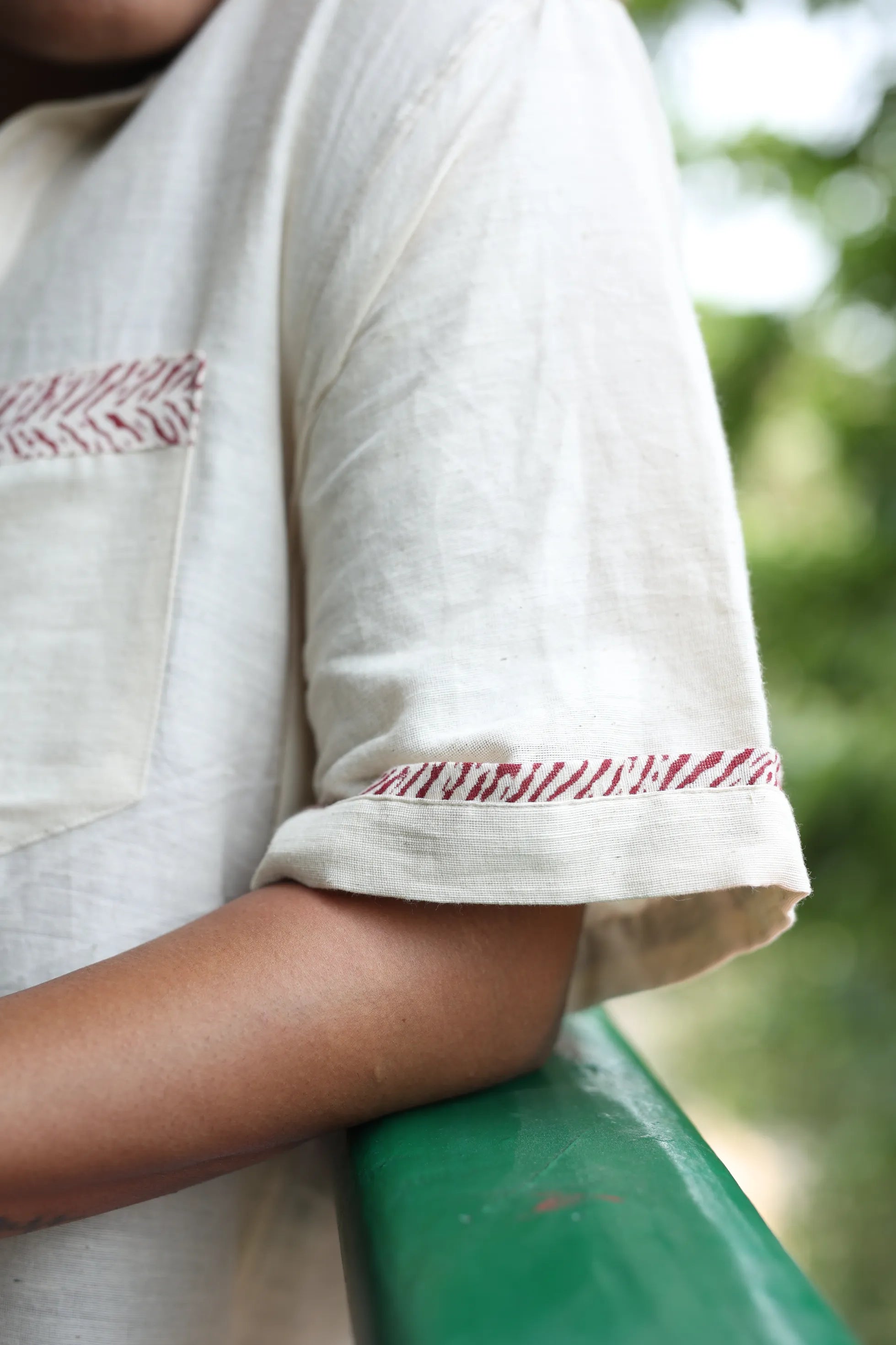 After the fire, featuring discreet block print detailing on the pocket and button line, offers a refined look with soft, breathable handspun and handwoven cotton fabric fabric that ensures all-day comfort.